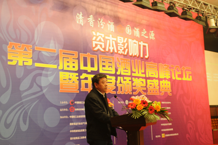 中國釀酒工業(yè)協(xié)會理事長王延才在頒獎盛典上作重要講話 3月23日,中國釀酒工業(yè)協(xié)會、《中國酒業(yè)》雜志社在成都城市名人酒店隆重召開“資本…