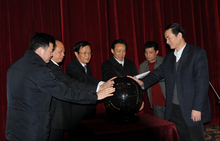 總經(jīng)理張春雷(左三)與荊州市領(lǐng)導共同啟動水晶球 3月29日,枝江酒業(yè)與荊州新視界農(nóng)村電影院線公司聯(lián)手,正式啟動“知心知己枝江酒,…