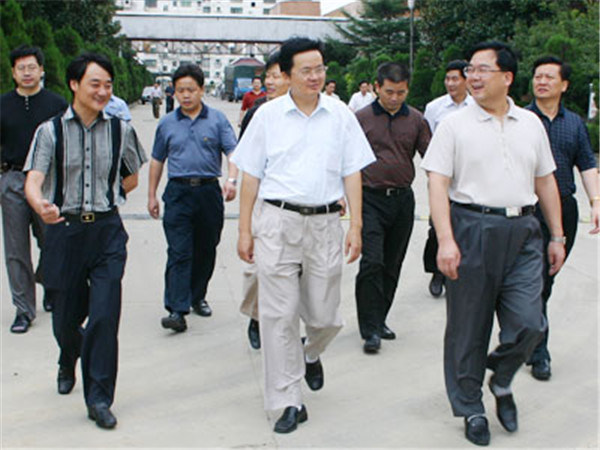 8月9日,宜昌市政協(xié)副主席景學(xué)鎮(zhèn)(中)一行在枝江市委副書記陳敏仁(右)、枝江酒業(yè)公司董事長兼總經(jīng)理蔣紅星陪同下,到枝江酒業(yè)考察調(diào)研。(…