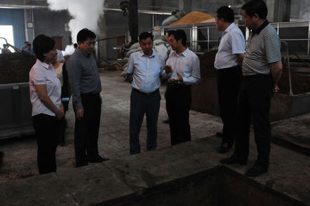 在枝江酒業(yè)總經(jīng)理陳洪衛(wèi)、黨委書記張華、常務(wù)副總經(jīng)理譚崇堯、副總經(jīng)理亓新明的陪同下,來訪客人實(shí)地查看了枝江酒業(yè)釀造五車間和五萬噸灌裝中心,詳細(xì)了解了枝江酒的釀造工藝以及五萬噸灌裝車間一期項(xiàng)目收尾工程的在建情況。歐陽萬坤對枝江酒業(yè)近幾年的飛速發(fā)展給予了充分肯定,對釀造車間的機(jī)械化改造工程及規(guī)模宏大的五萬噸灌裝中心大加贊賞,認(rèn)為這是順應(yīng)現(xiàn)代化工業(yè)企業(yè)發(fā)展的必然趨勢,也是企業(yè)轉(zhuǎn)型升級的成功典范。同時(shí),他也對枝江酒業(yè)寄予了厚望:作為枝江市的重點(diǎn)龍頭企業(yè),枝江酒業(yè)在發(fā)展枝江品牌建設(shè)的同時(shí),要再接再厲,打造白酒產(chǎn)業(yè)集群。