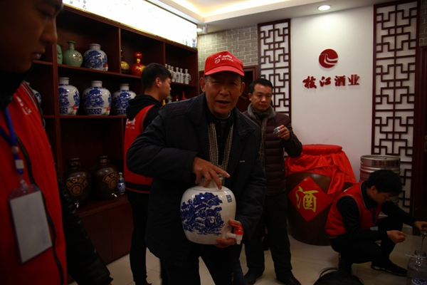 老人家說:你們的酒好,剛才品嘗了一點。贈送的酒壇更實用